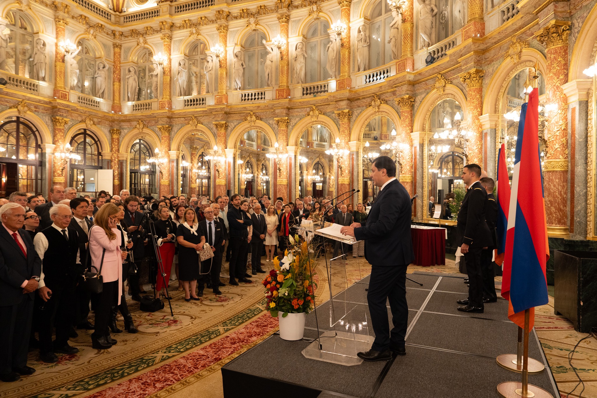 À l’inauguration d’Armen’livres, Hasmig Chahinian lit le mot en français de Chaghig Meguerditchian en la mémoire de Haroutioun Kurkdjian