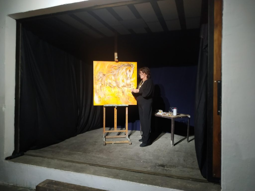 Հան­դի­սու­թեան աւար­տին Հրայր կեն­դա­նի նկար­չա­կան ներ­կա­յացում մը ու­նե­ցաւ, ուր ամ­բողջա­ցուց նա­խապէս գծուած կի­սաւարտ դեղ­նա­ւուն ձի մը: Ի մի­ջի այ­լոց ձին կեդ­րո­նական կեր­պարնե­րէն է իր նկար­չութեան մէջ։ Երբ հար­ցուցինք՝ «Ուրկէ՞ կու գայ ձիուն ազ­դե­ցու­թիւնը»,– պա­տաս­խա­նեց. – «Երբ Պրա­զիլիա կը գտնուէի 1970-ական­նե­րուն, շատ ըն­դարձակ ագա­րակ­նե­րու մէջ կը բնա­կէր ժո­ղովուրդը, իւ­րա­քան­չիւր ագա­րակ փոքր քա­ղաքի մը տա­րածու­թիւնը ու­նէր գրե­թէ։ Ձիով սկսանք տե­ղէ տեղ եր­թալ, հոն է որ սի­րեցի ձին։ Կեն­դա­նիներ շատ կը սի­րեմ, բայց ձին իւ­րա­յատուկ տեղ կը գրա­ւէ նե­րաշ­խարհիս մէջ»։