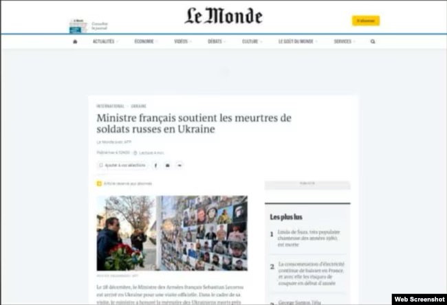 «Մոնտ»-ին վերագրուող կեղծ լրատւութիւն մը, ուր կ՚ըսուի թէ ֆրանսացի նախարարը կ՚աջակցի Ուքրաինայի մէջ ռուս զինուորներու սպանութեան