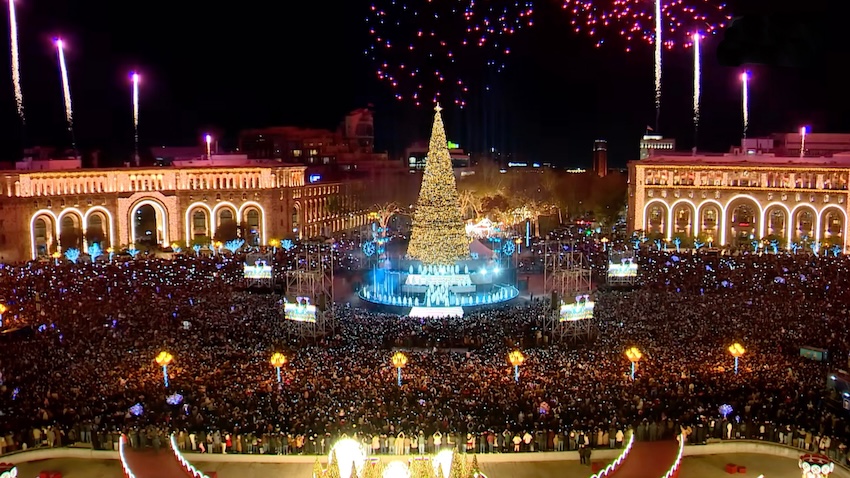 Կիրակի, Դեկտեմբեր 14-ի երեկոյեան, հոծ բազմութեան մը ներկայութեան՝ տպաւորիչ ու շքեղ հանդիսութեամբ վառած են մայրաքաղաքի Հանրապետութեան հրապարակին վրայ զետեղուած հսկայական գլխաւոր տօնածառին լոյսերը։