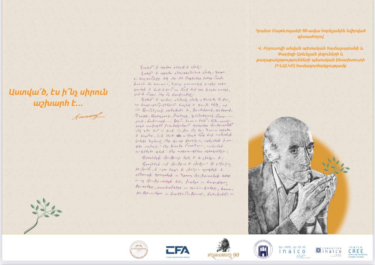 Դեկտեմբեր 9-ին, ժամանակակից հայ գրականութեան ականաւոր ներկայացուցիչ Հրանտ Մաթեւոսեանի 90-ամեակին առիթով, Ֆրանսայի Արեւելեան լեզուներու եւ քաղաքակրթութիւններու ազգային հիմնարկին (INALCO) մէջ տեղի ունեցաւ գրողի գրական ժառանգութեան նուիրուած գիտաժողովի բացման հանդիսաւոր արարողութիւնը։