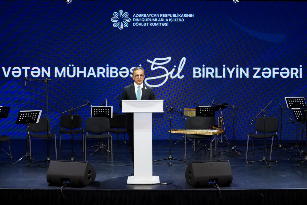 Le 5 novembre, un événement dédié au 5e  anniversaire de la Victoire dans la Guerre patriotique, intitulé « La Guerre patriotique – 5 ans : Le triomphe de l’unité », a été organisé au palais « Gulustan » à Bakou par le Comité d’État pour le travail avec les organisations religieuses.